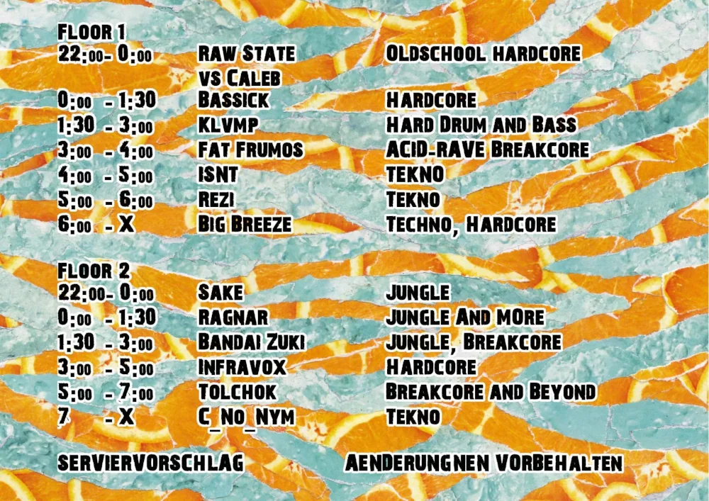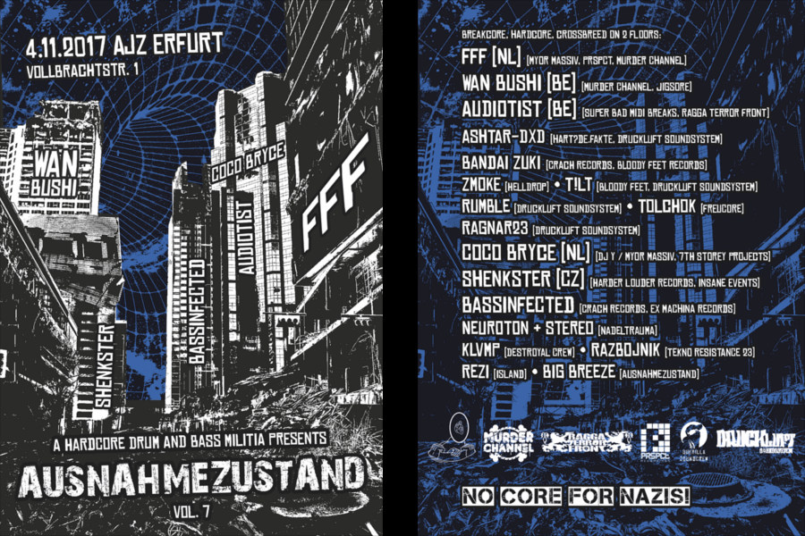 Im Moment beschränken wir uns noch vorwiegend auf unsere Veranstaltungen. Mit wechselnden Schwerpunkten versuchen wir ausgewogene Lineups zusammen zu basteln, bei denen die nötige Härte nicht verloren geht. Mal liegt der Fokus mehr auf Breakcore und ein anderes Mal auf Crossbreed oder Hardcore. Dazu gibt es jeweils einen zweiten Floor, auf dem es dann etwas ruhiger oder etwas härter zugeht. Damit sollen auf beiden Floors bestenfalls Berührungspunkte für alle Anwesenden entstehen.